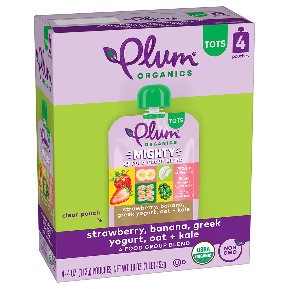 We made a classic strawberry-banana combo more mighty with greek yogurt, kale, and oats! Littles can explore new textures with this well-balanced puree.
